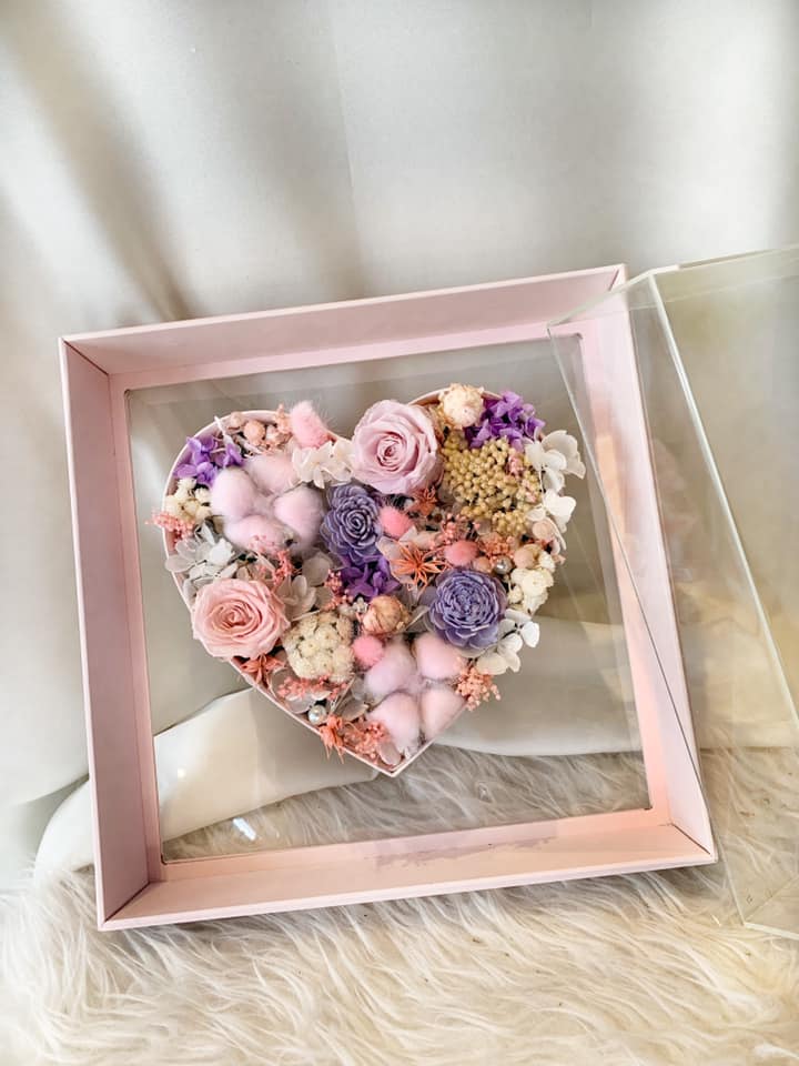 Using premium acrylic box with preserved flower arrangement high quality at least 2 years lasting