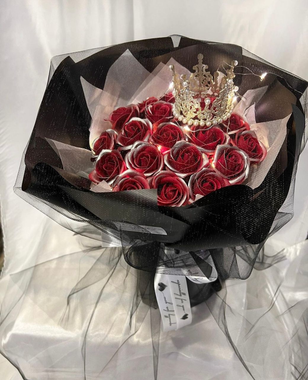 18 red colour soap roses mix silver colour come with LED light and crown