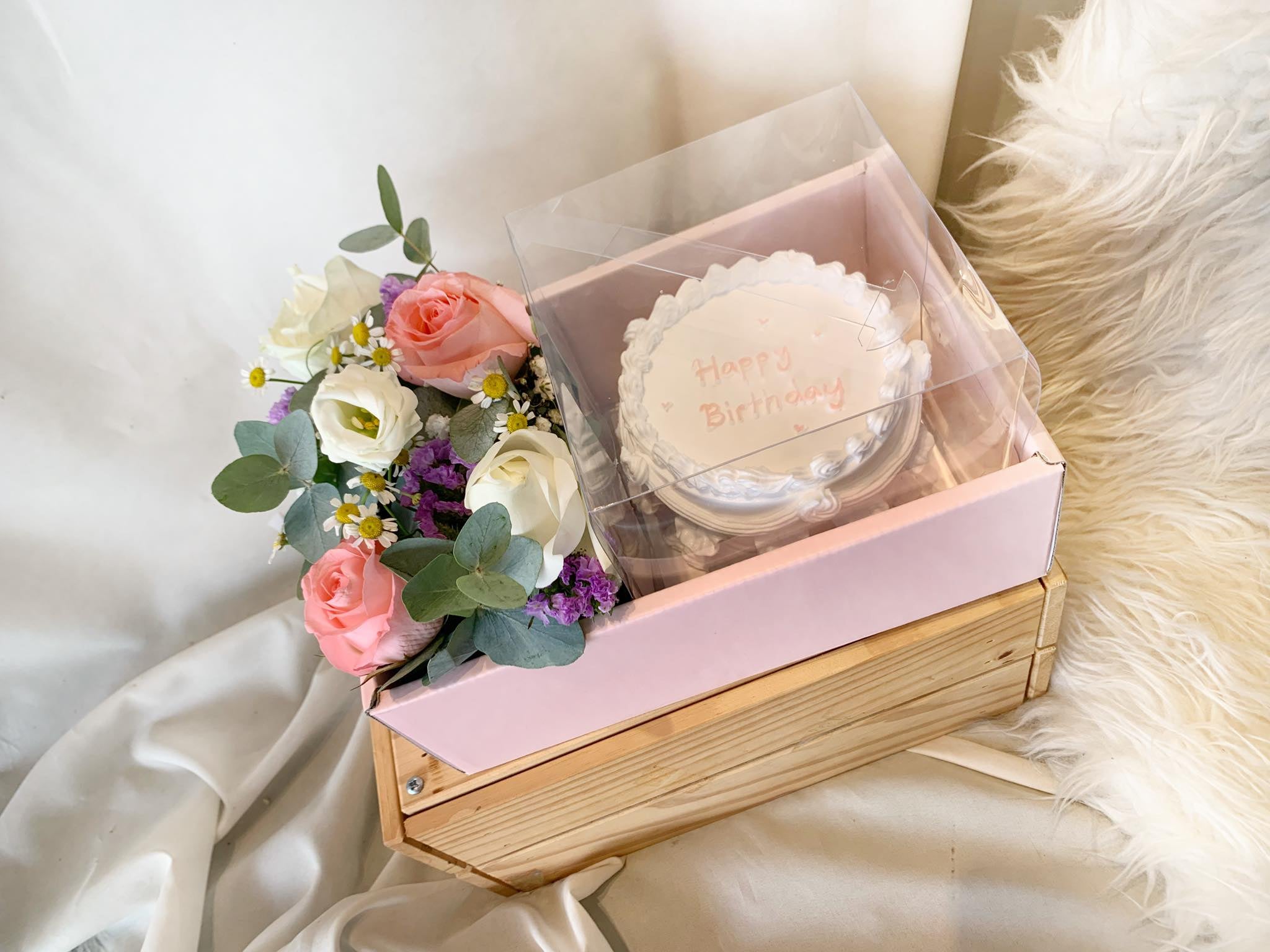 Flower box with 4 inch cake